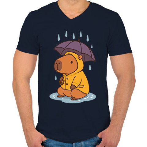 1 kép PRINTFASHION Tavaszi kapibara - Férfi V-nyakú póló - Sötétkék