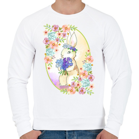 1 kép PRINTFASHION Tavaszi nyuszi - Férfi pulóver - Fehér