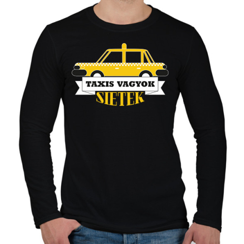 1 kép PRINTFASHION Taxis vagyok, sietek - Férfi hosszú ujjú póló - Fekete