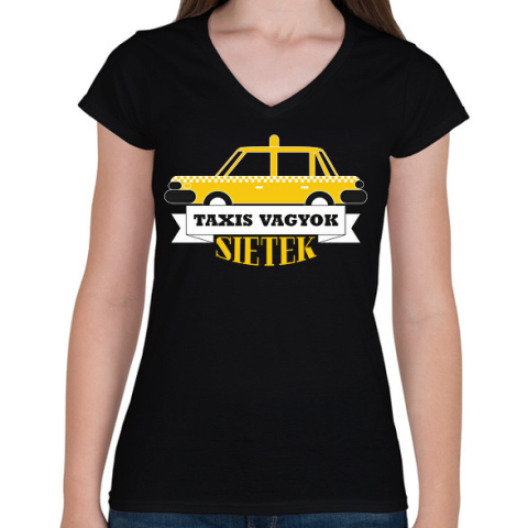 1 kép PRINTFASHION Taxis vagyok, sietek - Női V-nyakú póló - Fekete