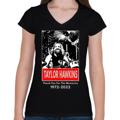 1 kép PRINTFASHION Taylor Howkins - Női V-nyakú póló - Fekete