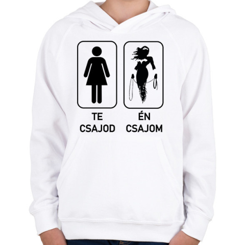 1 kép PRINTFASHION Te Csajod Én Csajom - Gyerek kapucnis pulóver - Fehér