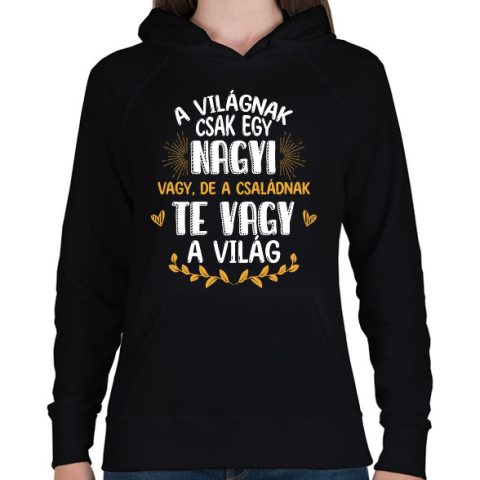 1 kép PRINTFASHION Te vagy a világ - Nagyi - Női kapucnis pulóver - Fekete