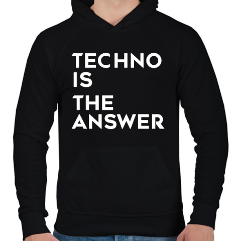 1 kép PRINTFASHION Techno is the answer! - Férfi kapucnis pulóver - Fekete