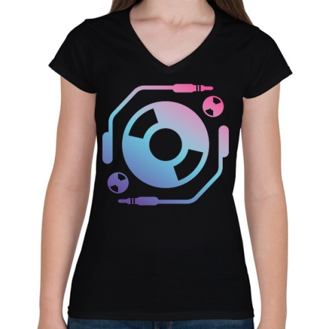 1 kép PRINTFASHION Techno - Lemezlovas - Női V-nyakú póló - Fekete