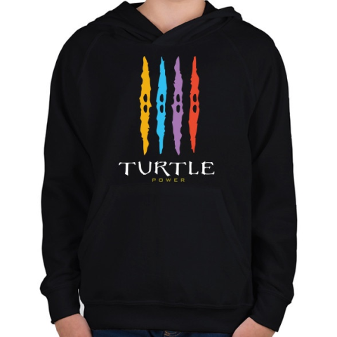 1 kép PRINTFASHION Teknős erő - Gyerek kapucnis pulóver - Fekete