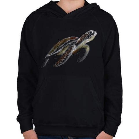1 kép PRINTFASHION Teknős portré - Gyerek kapucnis pulóver - Fekete