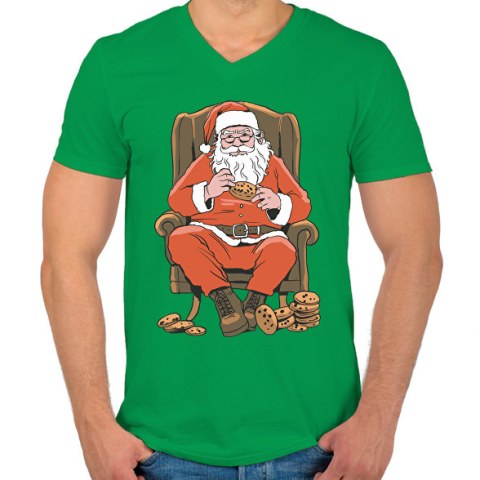 1 kép PRINTFASHION Télapó sütizik - Férfi V-nyakú póló - Zöld