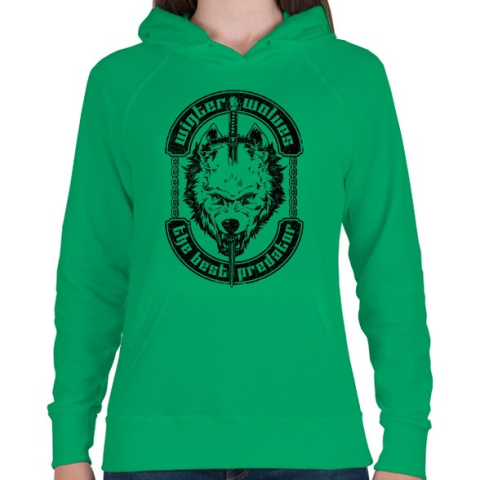 1 kép PRINTFASHION Télen a farkasok a legjobb ragadozók - Női kapucnis pulóver - Zöld