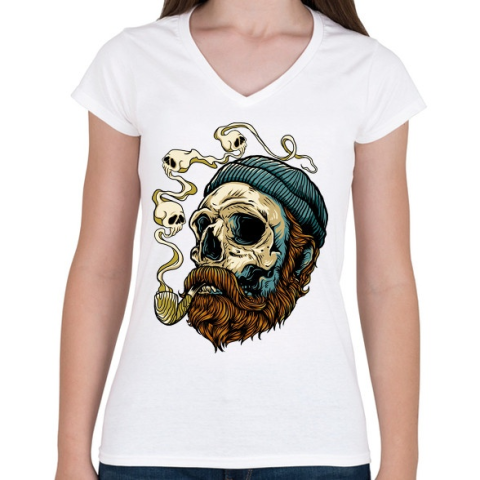 1 kép PRINTFASHION Tengerész koponya - Női V-nyakú póló - Fehér