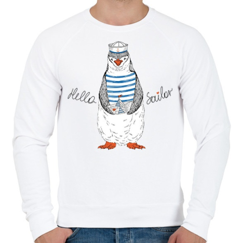 1 kép PRINTFASHION Tengerész Pingvin - Férfi pulóver - Fehér