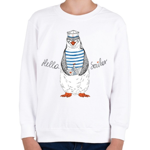 1 kép PRINTFASHION Tengerész Pingvin - Gyerek pulóver - Fehér