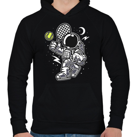 1 kép PRINTFASHION Tenisz a holdon - Férfi kapucnis pulóver - Fekete
