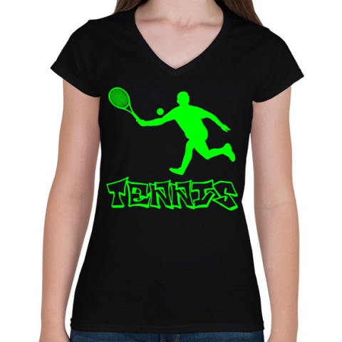 1 kép PRINTFASHION tenisz - Női V-nyakú póló - Fekete
