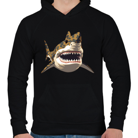 1 kép PRINTFASHION Terepmintás cápa - Férfi kapucnis pulóver - Fekete