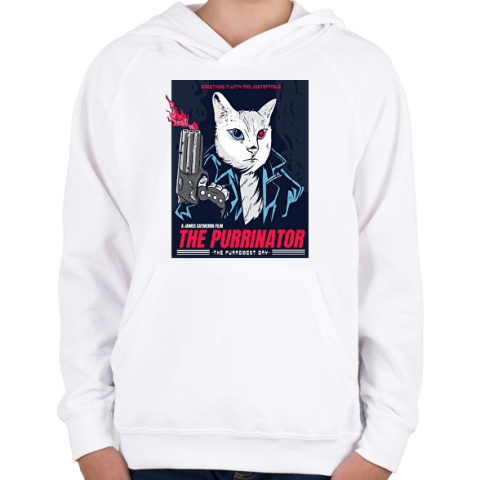 1 kép PRINTFASHION Terminátor cica - Gyerek kapucnis pulóver - Fehér