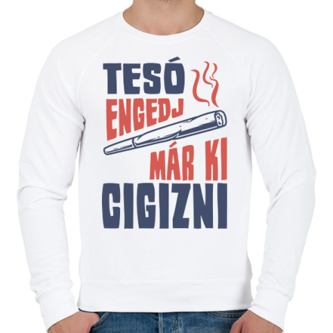 1 kép PRINTFASHION Tesó engedj már ki cigizni - Férfi pulóver - Fehér