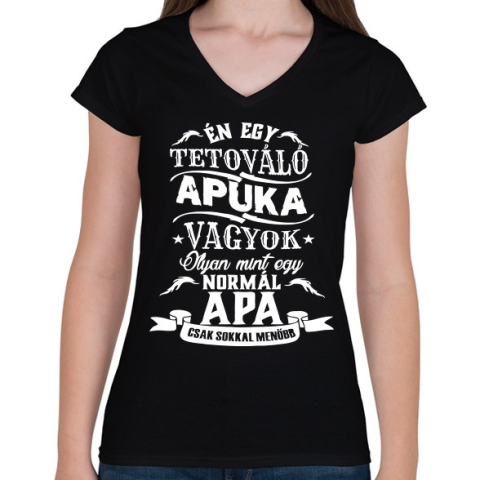 1 kép PRINTFASHION Tetováló apuka - Női V-nyakú póló - Fekete