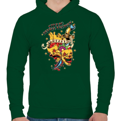 1 kép PRINTFASHION Tetováló gyár - Férfi kapucnis pulóver - Sötétzöld