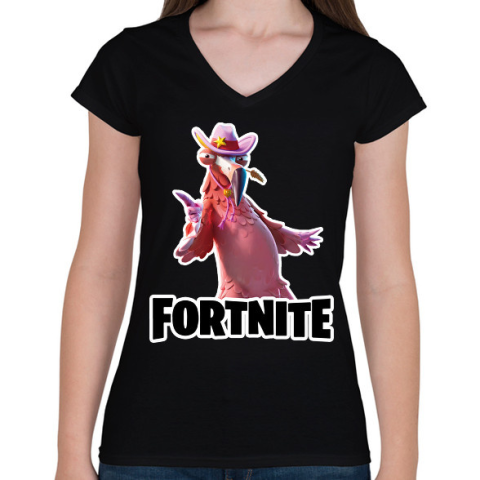 1 kép PRINTFASHION Tex Flamingo - fortnite - Női V-nyakú póló - Fekete