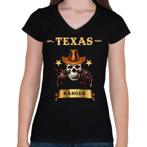 1 kép PRINTFASHION TEXAS RANGER SKULL - Női V-nyakú póló - Fekete