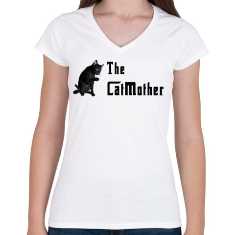 1 kép PRINTFASHION the catmother - Női V-nyakú póló - Fehér