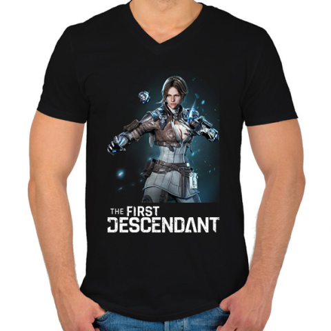 1 kép PRINTFASHION The First Descendant Viessa - Férfi V-nyakú póló - Fekete