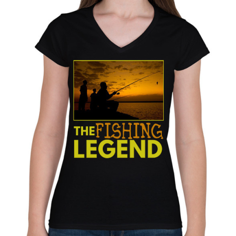 1 kép PRINTFASHION the fishing legend - Női V-nyakú póló - Fekete