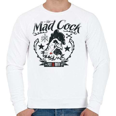 1 kép PRINTFASHION The mad cock pot & beer - Férfi pulóver - Fehér