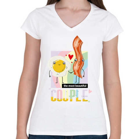 1 kép PRINTFASHION The most beautiful couple - Női V-nyakú póló - Fehér