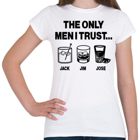 1 kép PRINTFASHION The only men I trust...Jack, Jim, Jose - Női póló - Fehér