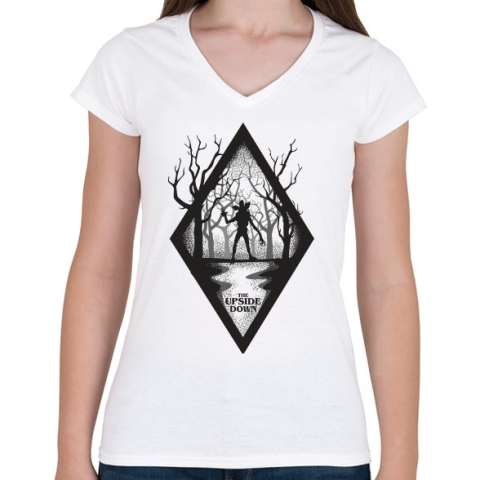 1 kép PRINTFASHION The Upside Down - Női V-nyakú póló - Fehér