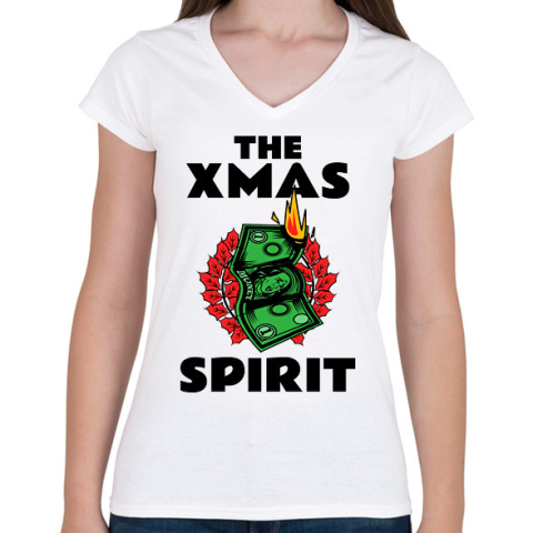 1 kép PRINTFASHION THE XMAS SPIRIT - Női V-nyakú póló - Fehér