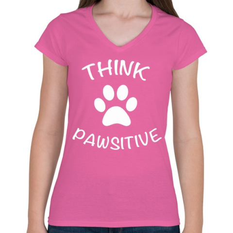 1 kép PRINTFASHION Think pawsitive - Női V-nyakú póló - Rózsaszín