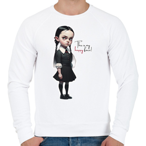 1 kép PRINTFASHION This is my happy face! - Wednesday - vicces póló minta - Férfi pulóver - Fehér