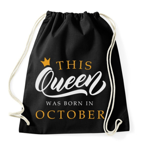 1 kép PRINTFASHION THIS QUEEN WAS BORN IN OCTOBER - Sportzsák, Tornazsák - Fekete