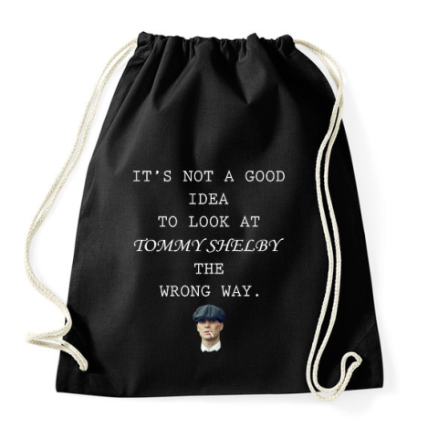 1 kép PRINTFASHION Thomas Shelby wrong way - Sportzsák, Tornazsák - Fekete