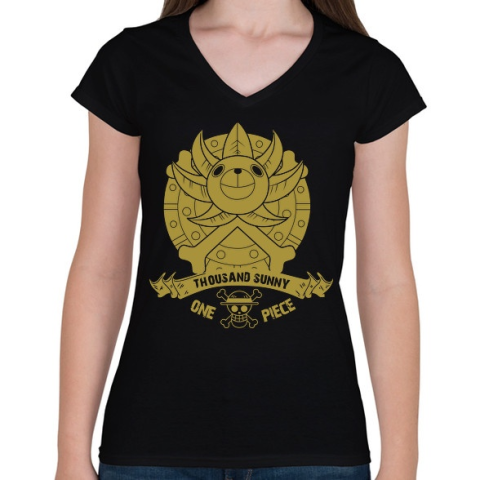 1 kép PRINTFASHION Thousand Sunny One Piece Anime - Női V-nyakú póló - Fekete