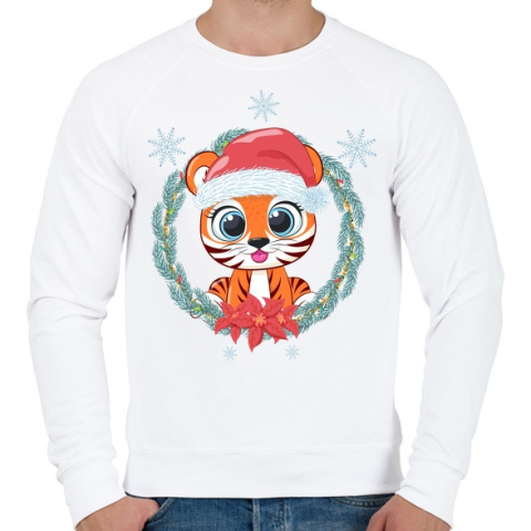 1 kép PRINTFASHION Tigris baba karácsonya - Férfi pulóver - Fehér
