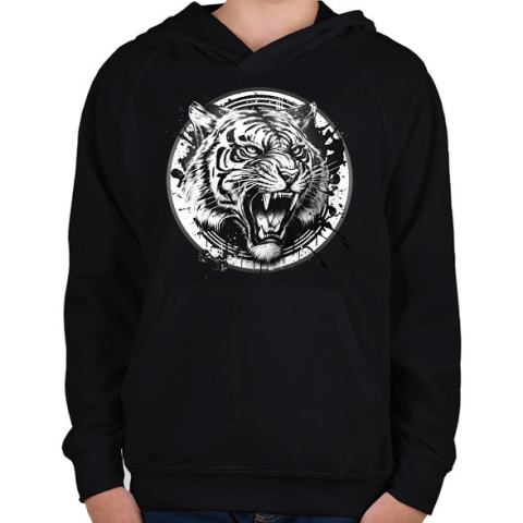 1 kép PRINTFASHION Tigris black and white - Gyerek kapucnis pulóver - Fekete