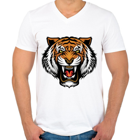 1 kép PRINTFASHION Tigris - Férfi V-nyakú póló - Fehér