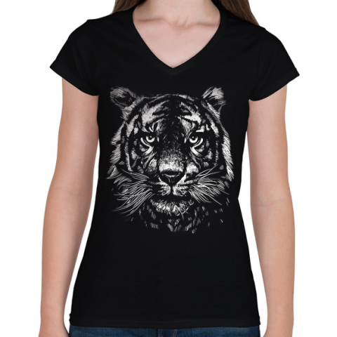 1 kép PRINTFASHION Tigris - Női V-nyakú póló - Fekete