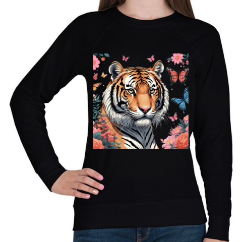 1 kép PRINTFASHION tigris pillangókkal és virágokkal - Női pulóver - Fekete