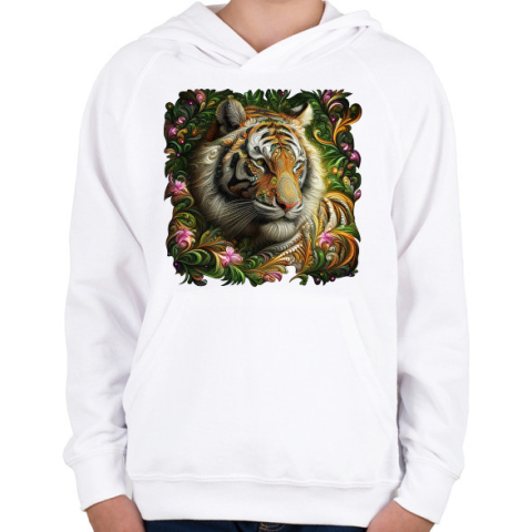 1 kép PRINTFASHION Tigrisfej - Gyerek kapucnis pulóver - Fehér