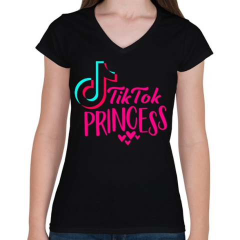 1 kép PRINTFASHION Tik Tok Hercegnő - Női V-nyakú póló - Fekete