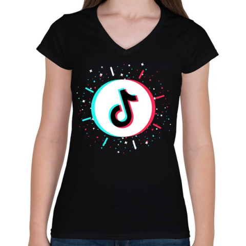 1 kép PRINTFASHION Tik Tok logo - Női V-nyakú póló - Fekete