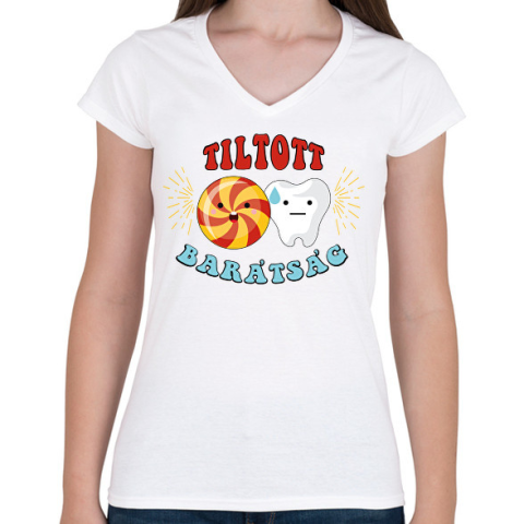 1 kép PRINTFASHION Tiltott barátság - Női V-nyakú póló - Fehér