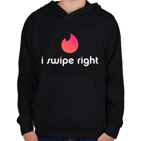 1 kép PRINTFASHION Tinder: I Swipe Right - Gyerek kapucnis pulóver - Fekete
