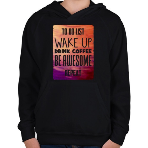 1 kép PRINTFASHION To do list - Gyerek kapucnis pulóver - Fekete