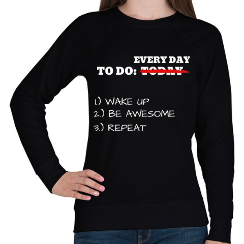 1 kép PRINTFASHION To do TODAY: WAKE UP, BE AWESOME, REPEAT - Női pulóver - Fekete